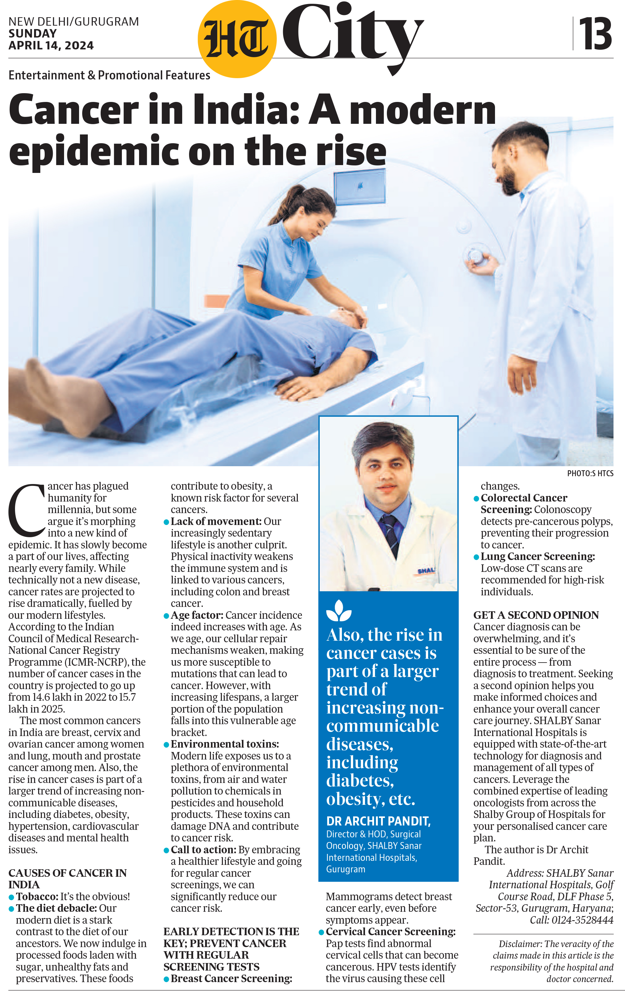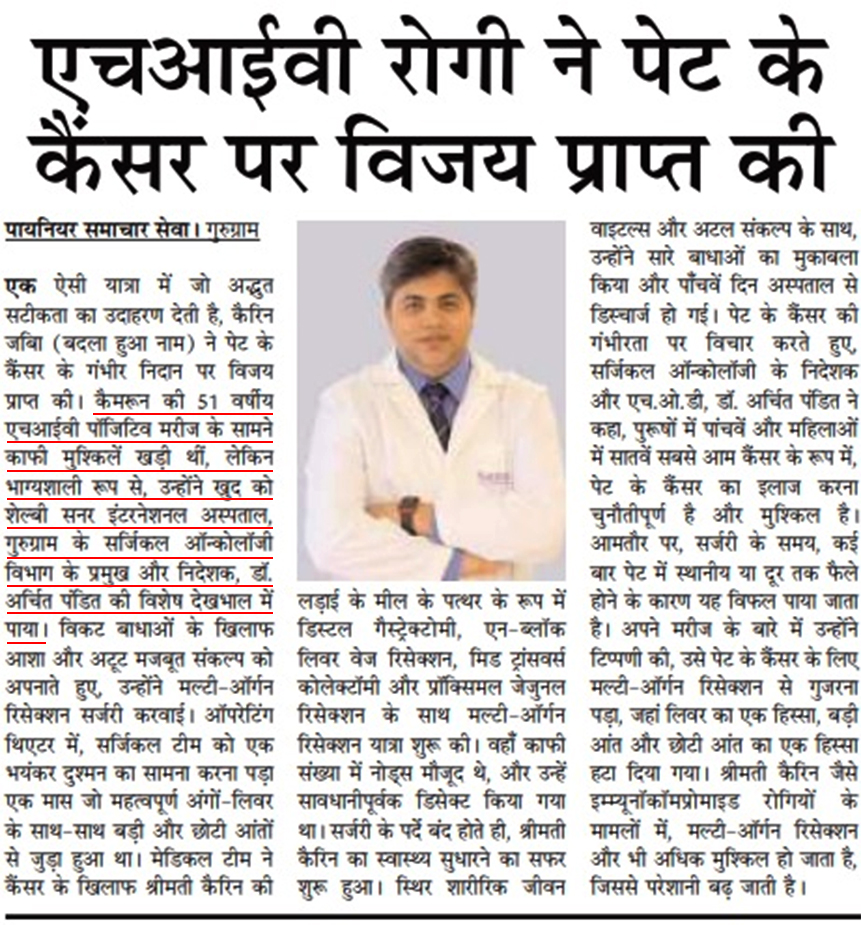 Please find below coverage based on the inputs shared by Dr Archit Pandit, Director of surgical Oncology at Fortis Escorts, Okhla Road. Publication: The Times of India Headline: Twice a cancer survivor, invites her doctor to her 50th wedding anniversary celebration
